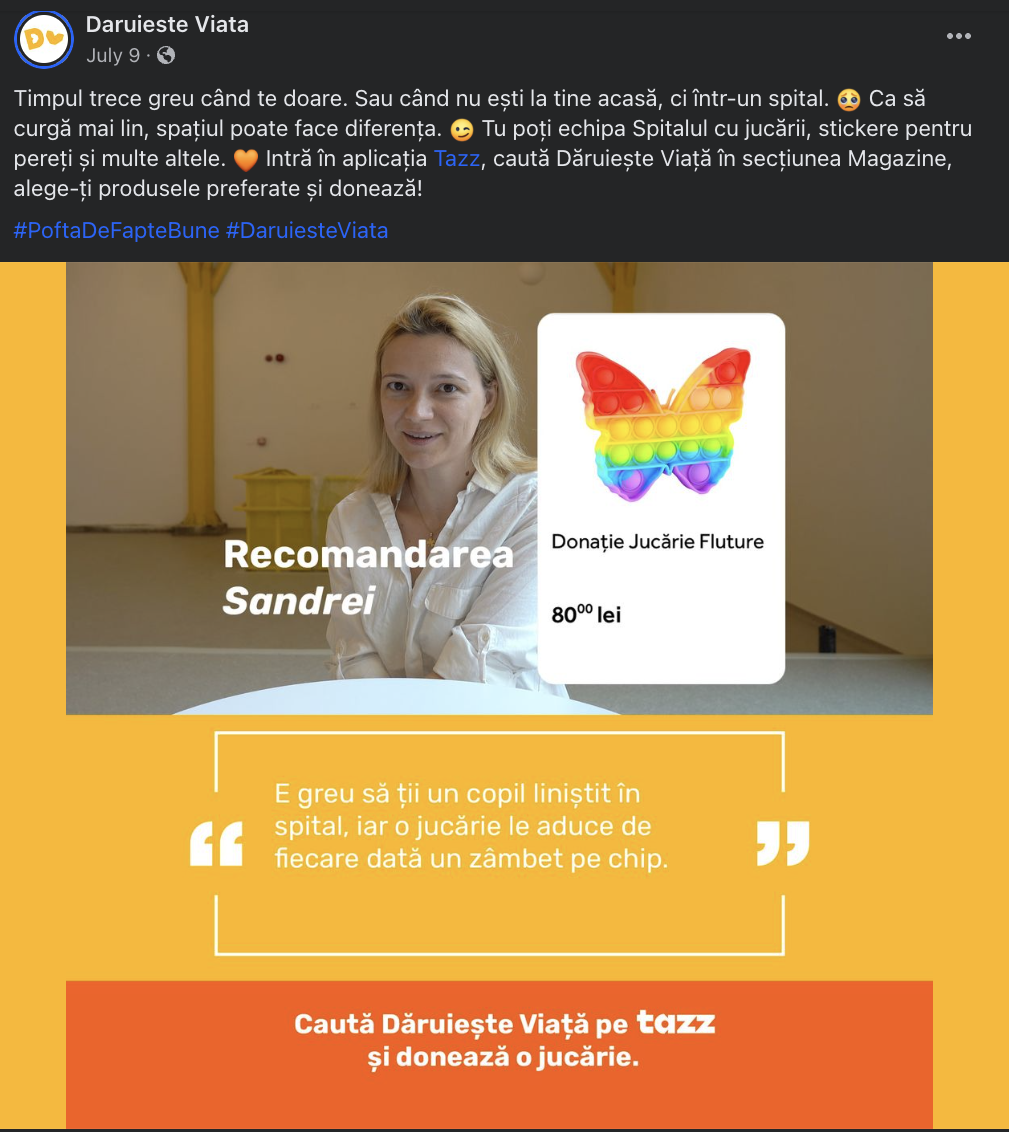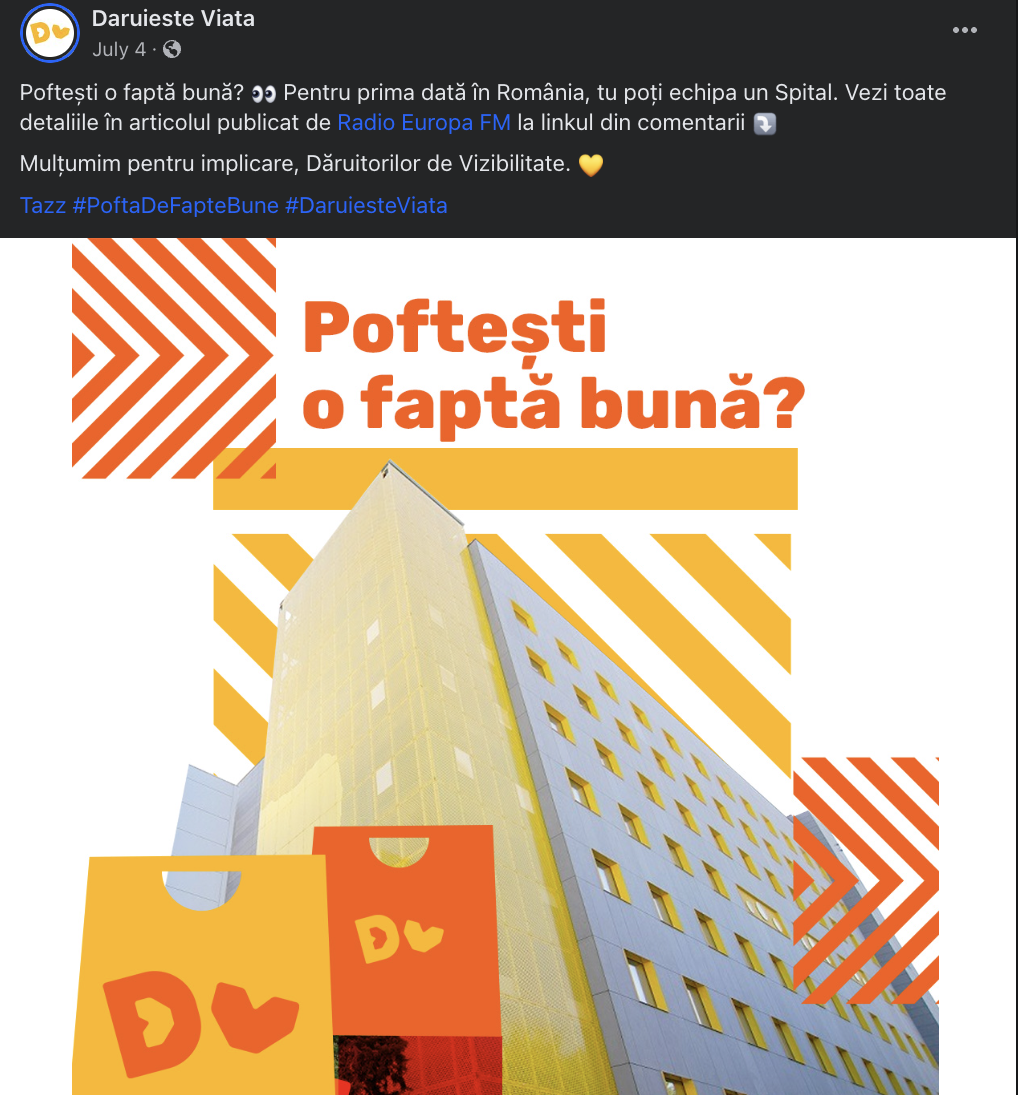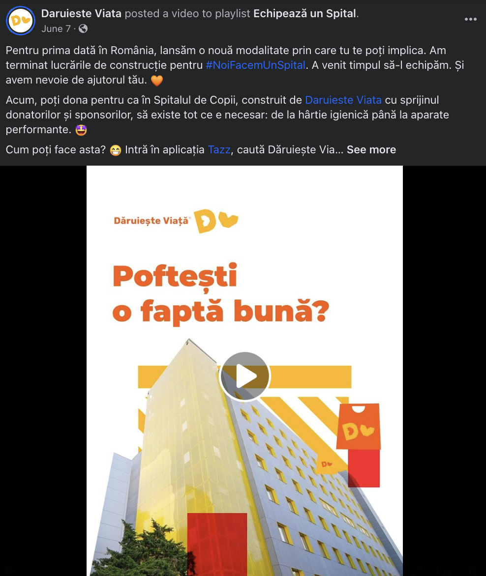 THE COST-OF-LIVING CRISIS HAS BEEN AFFECTING CHARITIES IN ROMANIA Imagine that in Romania almost 80% of the family budget is consumed every month. (Source. INS, June 2023) No wonder charities are confronting a "cost of giving" dilemma, with more and more Romanians experiencing the burden of increasing costs for food and energy and the threat of recession. Therefore, last thing on anyone’s mind are donations. OUR CHALLENGE: How could Daruieşte Viață keep alive its cause and raise funds to equip the hospital they built over the past 5 years, navigating through a rising cost of living crisis? Despite the widespread economic challenges in our country, Dăruiește Viață needed to remind Romanians of its charity mission, #NoiFacemUnSpital (We Build a Hospital), and ask them to unite their hearts and wallets once again, this time to provide equipment for the children hospital. THE TWIST: Instead of corporate power, we turned to human Individual power. Hence, we decided to EXTEND OUR GOODHEARTED COMMUNITY AND REACH NEW AUDIENCES TO OBTAIN AN IMMEDIATE DIRECT RESPONSE. It was clear to Dăruiește Viață that it had to expand its goodhearted community of donors and attract other segments with financial power to support our cause. KEY OBJECTIVES: 1. GENERATE IMMEDIATE DONOR RESPONSES TO REACH AS MANY DONATED ITEMS AS POSSIBLE. Despite Dăruiește Viață ZERO media budget, our objective was to generate immediate donor responses to obtain as many donated items as possible to equip the children's hospital. 2. Expand VISIBILITY to reach a new audience. More specifically, reach as many people as possible to expand our goodhearted donators community using an innovative donations mechanic. |