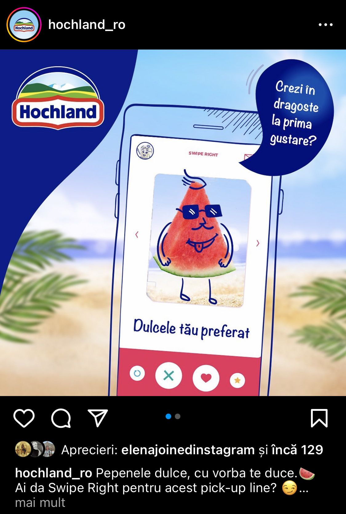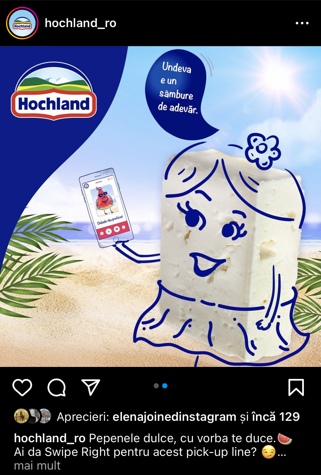 CONTEXT: IN 2023, THE CHEESE MARKET HAS BEEN CHALLENGED AND FOR THE FIRST TIME, AFTER A LONG PERIOD, IT WAS DECREASING Hochland is the leading brand in cheese and is one of the most resilient brands in the context, with a solid footprint in most of the sub-segments of the market. On the other hand, Telemea, one of the most popular types of cheese consumed in Romania, has a good seasonality in the summer. So, for the 2023 summer, our aim was to maximize Telemeaua’s role in the portfolio in order to protect Hochland’s position as leading brand in cheese market. COMMUNICATION OBJECTIVES The objectives were set to surpass with 10-30% Hochland’s previous communication benchmarks. • 6.000.000 views on TikTok and 2.000.000 views on YouTube for all the video content, set to exceed with approx. 10% Hochland’s previous campaigns’ benchmarks with the same investment; • 1.000.000 total engagements on TikTok, Youtube, Facebook & Instagram, set to exceed with 30% Hochland’s previous campaigns’ benchmarks. • 35% VTR in Youtube, set in line with the platform’s benchmark; • 5% VTR in Facebook, set to exceed with 30% Hochland’s previous campaigns’ benchmark. BRAND OBJECTIVES Achieve at least +3pp increase in Consideration, Preference & Recommendation among people exposed vs not exposed to the campaign (measure via Ad Impact Study by Reveal, after campaign). TARGET: UNTIL THAT POINT, MOTHERS WITH YOUNG CHILDREN WERE HOCHLAND’S TRADITIONAL TARGET Females, 30-45 y.o., from medium and big cities, for whom telemeaua is their comfort food and a secret weapon when it comes to kids - always in their fridge, ready to serve, suitable for several meals and occasions. DRIVING IMPACT REQUIRED A CHANGE IN THE APPROACH To shake the context, a shift in strategy was imperative. As a result, we made a bold decision to broaden our approach and extend our audience, aiming to reach and connect also with Gen Z and young Millennials (14-30 y.o.). Consequently, we needed new angles to captivate the younger demographic and breathe new life into Telemeaua Hochland. |